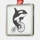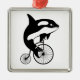 Killer Whale, Orca Riding a Bike Metal Tree Decoration