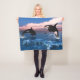 A herd of orca killer whales swimming in the Arctic Ocean. Icebergs floating in the sea and by the sunrise shimmering the clouds pink. Customise to personalised the gift product!