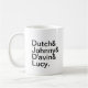 Killjoys Team Name List Mug: Dutch&Johnny&D'avin&Lucy. The warrant is all. SyFy/SpaceChannel Space Bounty Hunters TV show.