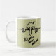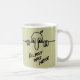 Classic white 11 oz. mug with an image, on both sides, of the WWII graffiti “Kilroy Was Here” on khaki.