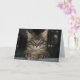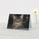 This funny birthday card features our beautiful gray striped Siberian cat, Kimber, with a quizzical expression on his face. Kimber is one of the feral kittens we rescued from our backyard when his mother abandoned him. He has a lot of Siberian in him, fluffy with a triple purr and weighing in at around 17 pounds. He loves to hug, make friends with people and is a treasured member of our family. This silly card is perfect for everyone.