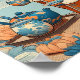 Kimono Kitty Having Tea Japanese Orange Blue Poster