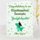 Cute adorable and modern congratulation card for kindergarten graduates. The design features a cute green blue dinosaur T-Rex with a dot/polka background the template is customisable with graduate name, year class,personal title. Perfect for kids/ grandson/ son kindergarten graduation, specially if the kids loves animals and particularly reptiles dinosaurs and T-Rex, they will love it!