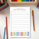 For the kindergarten/elementary school teacher. Bring a touch of literary charm to your daily planning with these large post‑it® notes to-do list featuring illustrated rainbow color books. Designed for anyone who loves a clean, modern workspace with a hint of cozy, bookish personality, this to-do list turns even the busiest to‑do list into a moment of calm and intention. The spacious layout gives you plenty of room to organize tasks, map out your day, or jot quick reminders, while the warm, boutique aesthetic elevates your desk, classroom, or home office. These post-it notes are a practical and stylish companion for teachers, students, readers, and stationery lovers. Whether you're planning lessons, organizing your week, or simply keeping track of life’s little tasks, this book‑themed to‑do list pad brings beauty and purpose together in one thoughtfully designed piece of stationery. Personalize by keeping the top design text as-is or edit and then add a name underneath. Ideal as a self-purchase or as a teacher appreciation gift.