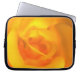 A 3D closeup created in Vue, of a fiery yellow rose, its translucent gold and orange petals glowing in the warm sunlight. The sunny cheerfulness of the yellow rose is often used to symbolise friendship and warm affection.