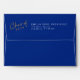 "Kindly deliver to" script graduation envelope. Designed in royal blue and yellow but colours can be customised using the Edit Tool to match your school colours. Back flap can be personalised with your graduating year, name, and return address. © Kimbellished, LLC