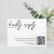 Simple black and white wedding RSVP response card with QR code. Personalise it with your event details and your wedding registry QR code.