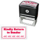 This simple rubber stamp design features the message "Kindly Return to Sender", along with a decorative arrow shape. It could be used to indicate that received letter mail may have been wrongly addressed, and should be returned to the sender.