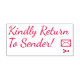 This rubber stamp design features the message "Kindly Return To Sender!", along with an arrow symbol. It might perhaps be used to indicate that received postal mail may have been wrongly addressed, and should be returned to the sender.