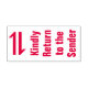 This simple rubber stamp design features the message "Kindly Return to the Sender", along with a decorative arrow shape. It could be used to indicate that received postal mail has been delivered to the wrong address, and should be returned to the sender.