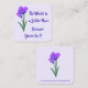 Spread good vibes with Kindness Cards! These are square business card sized cards with positive and inspirational words to hand out to friends, hide in family member's lunches, or leave for a stranger to find to brighten up their day. This design includes purple and blue flowers, and the text "The World is a Better Place Because You're In It".