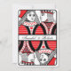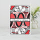 A fun, novelty Wedding invitation featuring the King and Queen of Hearts from a deck of playing cards as the Bride and Groom. Designed in black, white and red. To the front of the invitation, the King and Queen are side by side with the King gazing at the Queen. The image appears twice; at the top and then rotated 180 degrees on the bottom with a band separating the two images and allowing you to enter the Bride and Groom's names. The reverse of the invitation contains the Wedding invitation wording and has love heart in two corners. Perfect for a Vegas Wedding.
