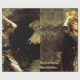 A knight in shining armour, with a red cape flowing behind him, reverently raises a gold crown above his head against a mountainous backdrop. The scene exudes an aura of mediaeval heroism and epic quest. This painting is called “King Arthur” by Charles Ernest Butler.
