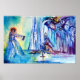 Colourful ,whimsical ,romantic, symbolist contemporary watercolor painting in soft blue,pink ,red, purple, violet, white colours for a spiritual,mystic Celtic legend by Alessandro Lumini 1989 .This cool and artistic design is also a beautiful gift for special occasions ,birthdays ,weddings,Christmas, holiday,Valentine's Day,Mardi Gras ( Fat Tuesday ) season. ----Vivien , this mysterious female gave Arthur his sword, Excalibur. She stole Lancelot when he was a child and cured him when he went mad. She may be a Celtic lake divinity in origin, perhaps of the same kind as the Gwagged Annwn - lake fairies in modern Welsh folklore. Vivien may very well have been the Lady of the Lake in the Arthurian Legends and stories. She, sometimes called Nineve, Nimue, Niniane, etc., is best known as the woman who sealed Merlin in a cave or a tree.
