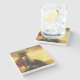 The coasters are gorgeous, a quality feel and heavy weight. They look like a precious archeological find. A rustic stone juxtaposed with a modern floral black and white print. I like the way the print goes slightly imperfect on the cut stone edges giving them a kind-of natural beauty.