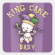 A cute Mardi Gras King Cake Baby in a jester's cap, holding a fleur de-lis and eye mask. Purple, green & gold art, t-shirts, sweats, cards, gifts.