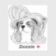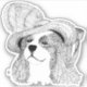 pen and Ink illustration of a King Charles Spaniel wearing a very fancy hat using the stippling technique