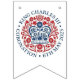 King Charles III Coronation logo on white background. The logo represents the four nations of the United Kingdom via the national flowers of each — the rose of England, the thistle of Scotland, the daffodil of Wales and the shamrock of Northern Ireland.