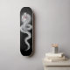 Silver king cobra with crown is set on a black background. This silver snake makes a unique skateboard.