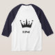 King Text or Name or Word with Black Colour Crown Image and The Style is Basic 3/4 Sleeve Raglan T-Shirt. Colour Type is White/Navy.