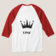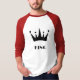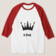 King Text or Name or Word with Black Colour Crown Image and The Style is Basic 3/4 Sleeve Raglan T-Shirt. Colour Type is White/Red.