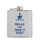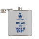 Fun dad flask. Ideal for a Father's Day gift or for a birthday or Christmas present. Flask reads King Dad relax and take it easy.