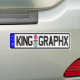 Bumper sticker with King Graphx license plate logo on it.