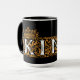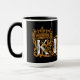 "Stylish black ceramic mug with bold white 'KING' lettering, perfect for a royal touch to your coffee or tea."