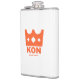 The flask itself is fine. It’s a cheap flask, obviously bought in bulk, however am prepared to overlook that. Given that it is a personalized item, I would have liked to have seen gift boxing instead of the generic packaging. Terrible printing, and/or quality. It’s a cheap, tacky vinyl. It is not cut straight and is also applied in a way that it is overhanging the bottom, causing the glue to catch on items and it will eventually roll and tear, damaging the wrap.