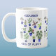 Perfect for anyone with a green thumb or fingers, this personalised King of Plants design features a fun houseplant pattern, with colourful cacti, succulents, and other plants in navy and cobalt blue plant pots. Ideal for any gardener or plant person. Change the name and text to customise. Original art by Nic Squirrell.