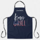 King of the grill, the perfect gift for the summer chef in your life. A idea birthday, Christmas, mothers day or fathers day gift or just a thank you for a awesome day! In patriotic red, white and blue with on trend script text and a cool vintage distressed feel, this makes the perfect addition to your grill this summer. Make sure you look the part while you barbecue.