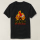 Funny shirt with King of the Grill logo featuring a royal crown, flames and crossed BBQ tools on red, yellow and black. A great Father's Day present!