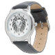 King of the Jungle Lion Face in Black. A stately lion's face drawing in black.  He is not roaring, he is looking straight ahead with steady eyes. His main falls around his head in bold curved stripes. The design is placed just a bit above the centre so you can better see his eyes and face. A safari or zoo wild amimal theme.  OPTIONS - Keep as is, or delete clock numbers if you prefer to have it plain with just the lion's head. Use Customise, Edit and Background if you prefer to add a background colour other than white. Click done at the bottom of colour choices to confirm your pick. For other clock styles: If you delete the clock numbers, you can enlarge the design by using plus sign and then centre the picture.