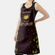 King of the Kitchen apron with a gold crown and stars on a black background. Create a gift set by adding a matching kitchen towel, mug, or other items.