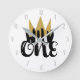 King of Wild One Gold Crown Jungle Nursery Kids Round Clock