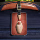 Antique retro bowling pin on red background printed on a luggage tag for the bowling bag.  High quality printing on a durable acrylic with a leather strap.  Personalise with your info on the back.  Looks great on luggage or bowling bags.
