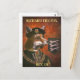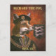 This Postcard is illustrated with a portrait of a fox in the guise of King Richard III of England. This regal fox stands before a muted red background with a shield bearing three foxes.