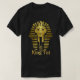 Stylised image of king Tut in gold with his name in hieroglyphs.