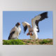 Two king vultures (Sarcoramphus papa) wings apart in cliff on blue sky background