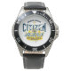 My husband loves the watch, he likes the dial, the graphics, the band, and it keeps perfect time.