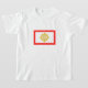 100% cotton so perfect for summer, It is a nicely designed t-shirt, the fabric is soft and the seams finished well, the body of the t shirt has no side seams. I bought a medium size for my two grandsons, aged 9 and 8 it will be slightly big on them but I would rather that than too small