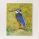 A colour pencil portrait of a brilliant blue Kingfisher bird at rest.