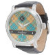 Plaid design in kingfisher palette colours. Seamless pattern. Custom text and monogram.