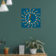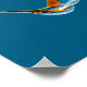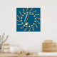An enchanting depiction of a circle of beautiful Kingfisher birds, with glorious orange, blue and white plumage, set against a deep blue background.