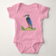 A colour pencil portrait of a brilliant blue Kingfisher bird adorns this baby girl's bodysuit! Customise by changing the background colour to suit yourself!