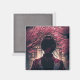 Computer generiertes Design einer Geisha in einem Kirschblüten Zauber. Abbildung einer Frau mit einer hübschen Frisur und Blüten im Haar welche einen Kimono trägt. Japanisches Design im AI - Midjourney Style. Dunkler Hintergrund mit Bubbles die an Feuer errinern. Im Hintergrund ist ein Gebäude aus dem ein helles Licht drängt, welches einem eine vertraute und melancholische Stimmung vermittelt.