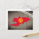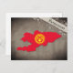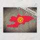 Postkarte mit einem Umriss von Kirgisistan, gefärbt in den Farben der Nationalflagge.