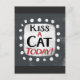 "Kiss A Cat Today" is a cute text design featuring a white accent shape surrounded by cute white polka dots.