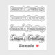This sheet holds a set of four custom contoured holiday stickers in a variety of fonts of custom kiss-cut greetings, currently "Season's Greetings", that you can change to your own greeting right on the product page!