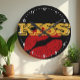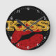 Wall Clock: Classic retro clock with golden text "KISS" and red lips - elegant fun design, college dorm, wedding gifts, house warming / bachelor's flat. Text can be easily changed to monogram.